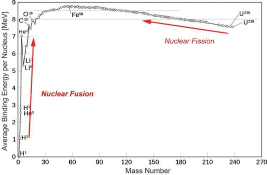 ولكن ليس كل اندماج ينتج الطاقة المطلوبة لإحداث حرارة هائلة, إنما كل ما كانت النواة الناتجة عن الإندماج أخف من عنصر الحديد والنيكل فأنها تنتج طاقة أكبر بسبب الترابط النووي لكل نواة قوي جدا فتطلق طاقة هائلة خرجت نتيجة فقد جزء كبير من طاقة الترابط, فيما لو كان الأندماج قد انتج نواة أثقل فأن الترابط النووي لكل نواة يضعف {كلما زادت عددة النوى قل الترابط النووي} فتكون قد امتصت الطاقة بدل أن تطلقها, ومثال على عند تكوين نواة كالهيليوم مثلا, نتيجة اندماج نواتي من نظائر الهيدروجين فإنها تطلق طاقة كبيرة جدا نتيجة لفقد الترابط النووي القوي الذي كان يشكل الكتلة, بينما العناصر ذات النواة الثقيلة كاليورانيوم والثوريوم؛ لها روابط نووية طاقية ضعيفة لذلك يسهل انشطاره مثلما يحدث في المفاعل النووي الحالي وعند تفككها فتنتج طاقة لها قوة اصغر عن طاقة الاندماج