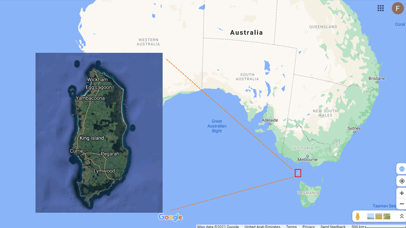 جزيرة الملك أو كينغ ايلند هي جزيرة صغيرة تقع بالقرب من جزيرة تاسمينيا ،عدد سكانها 2000 نسمة في مساحة تبلغ 1098 كم2 لكونها جزيرة نائية غير مرتبطة بإمدادات الكهرباء الرئيسية من الدولة أو من جزيرة تاسمينيا و لها محطة توليد طاقة يعمل على الديزل بسعة ،6 ميغاواط ؛ يواجه السكان صعوبة في العيش بها لانقطاع الكهرباء المستمر